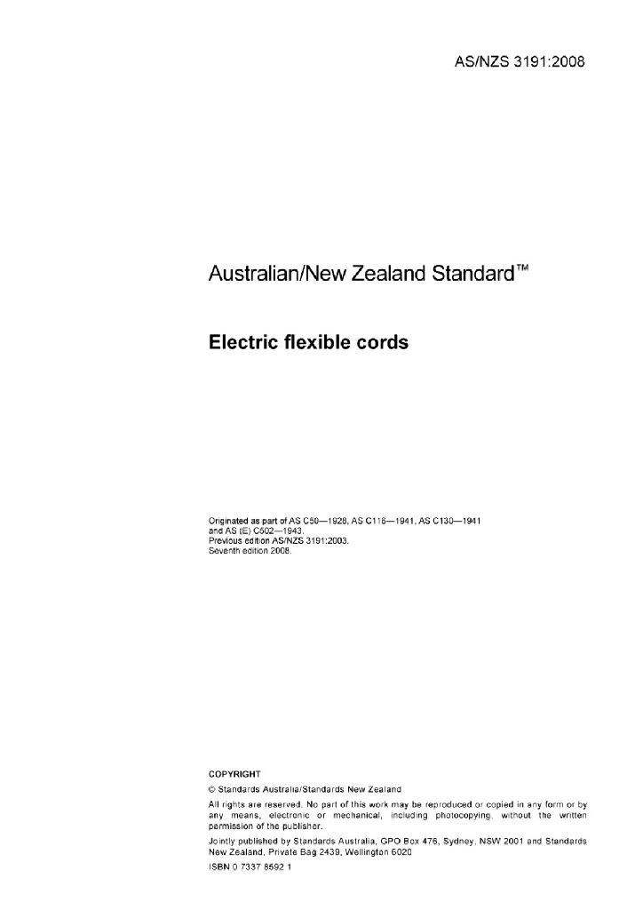 AS/NZS 3191:2008 软电线