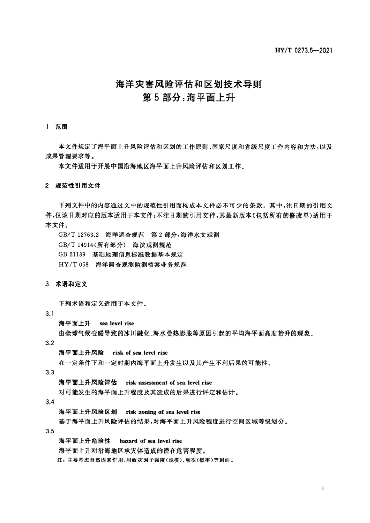 HY/T 0273.5-2021 海洋灾害风险评估和区划技术导则 第5部分:海平面上升