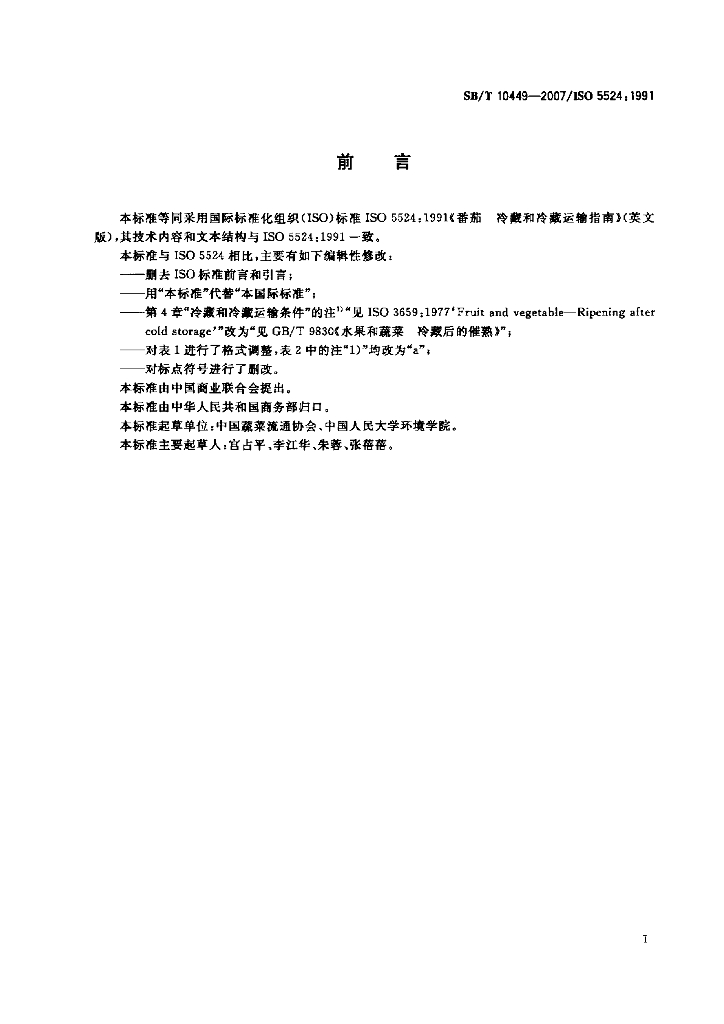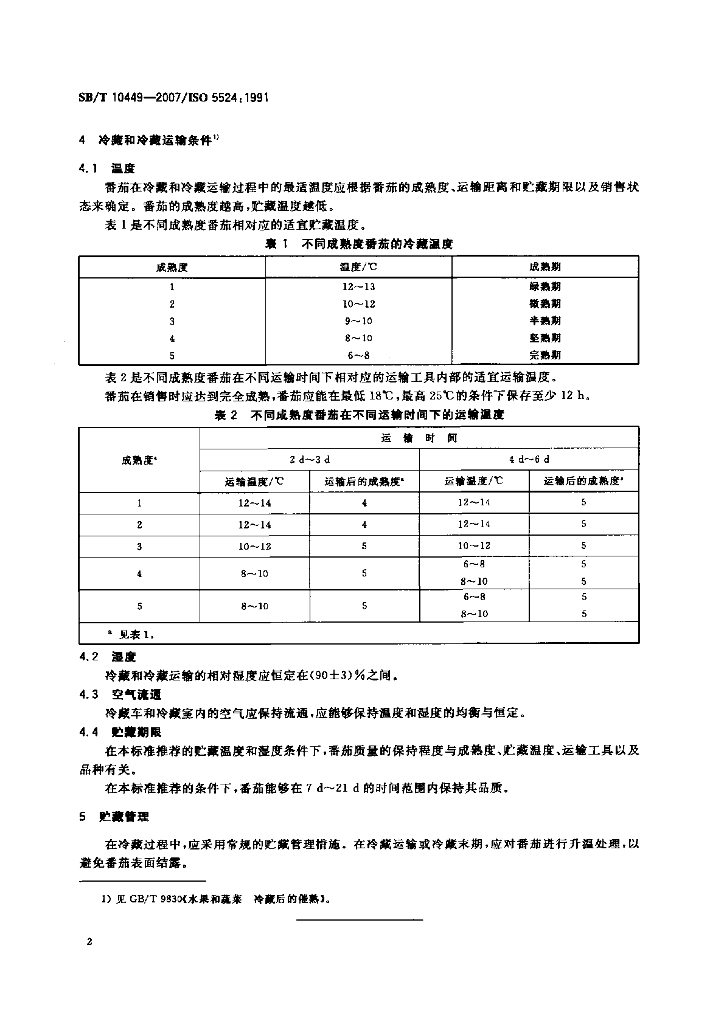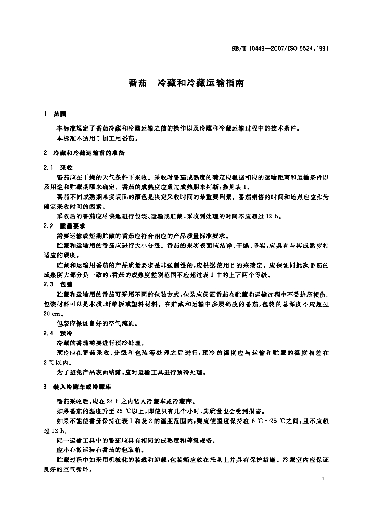 SB/T 10449-2007 番茄 冷藏和冷藏运输指南