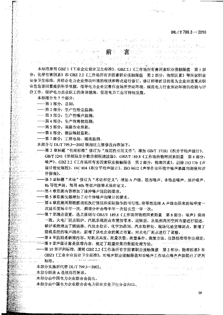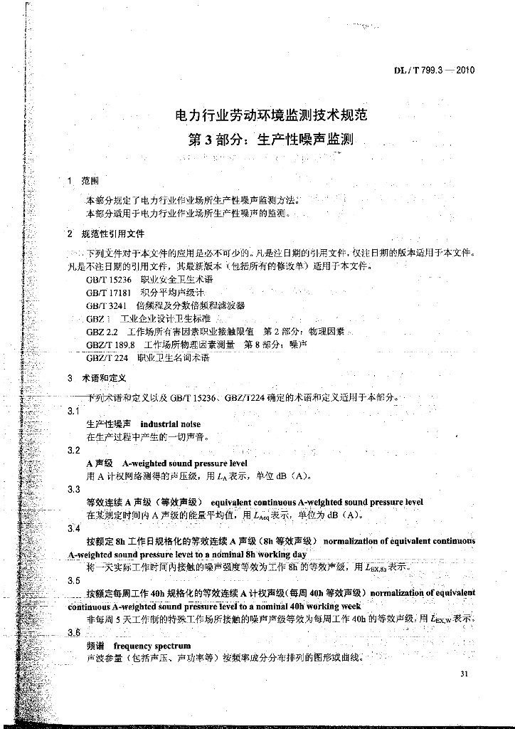 DL/T 799.3-2010 电力行业劳动环境监测技术规范 第3部分:生产性噪声监测