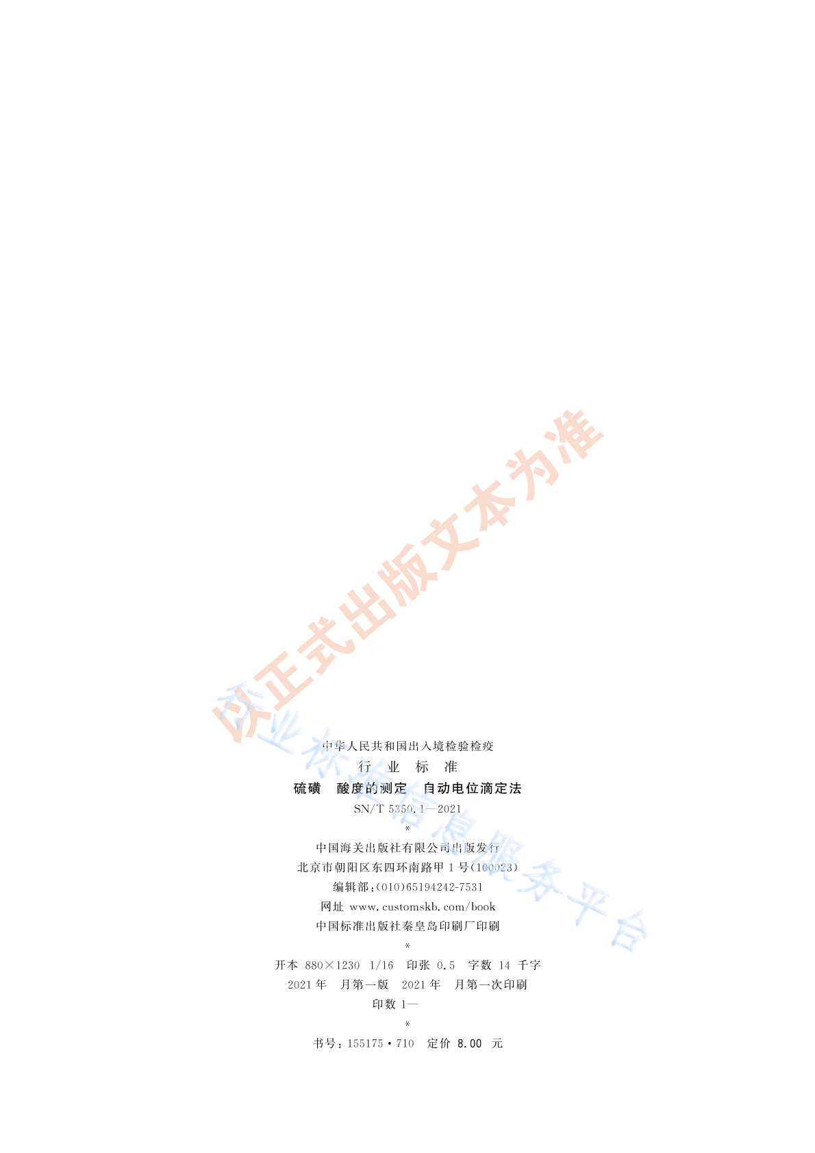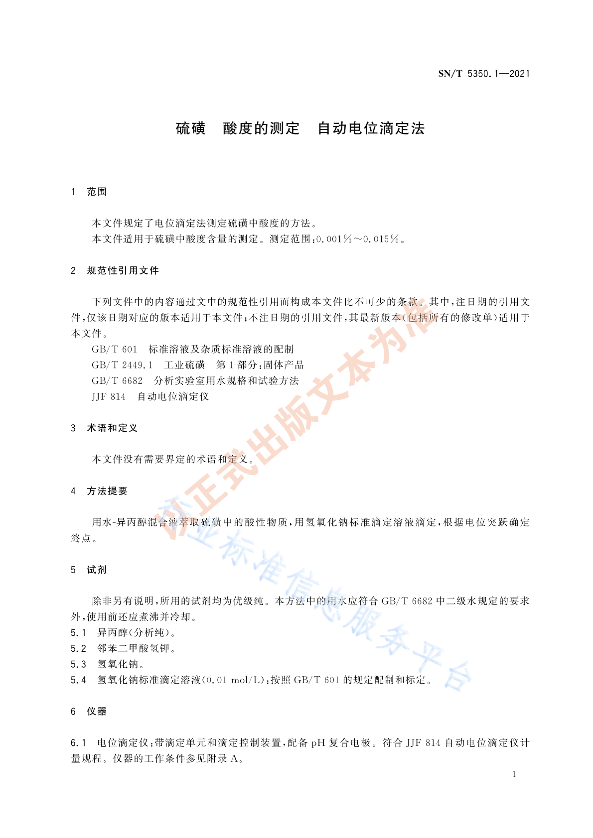 SN/T 5350.1-2021 硫磺 酸度的测定 自动电位滴定法