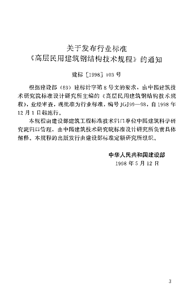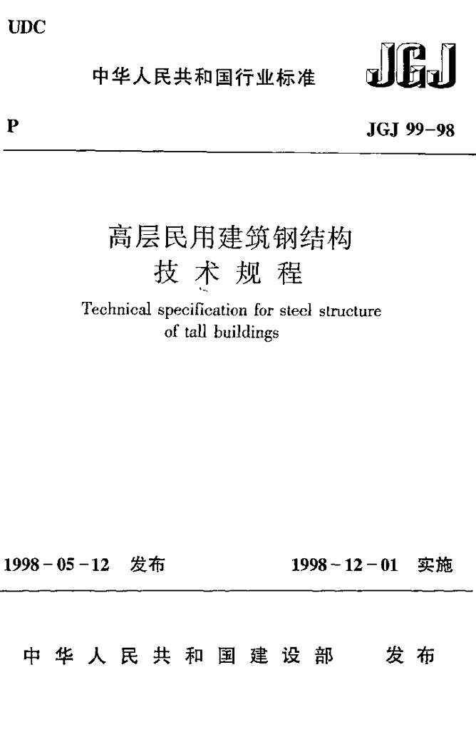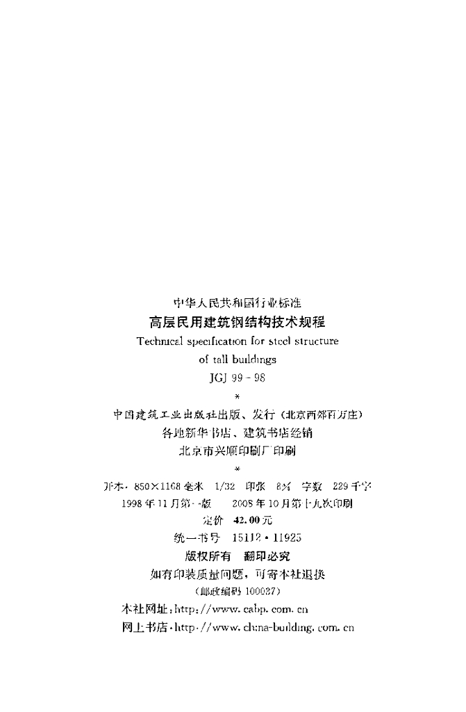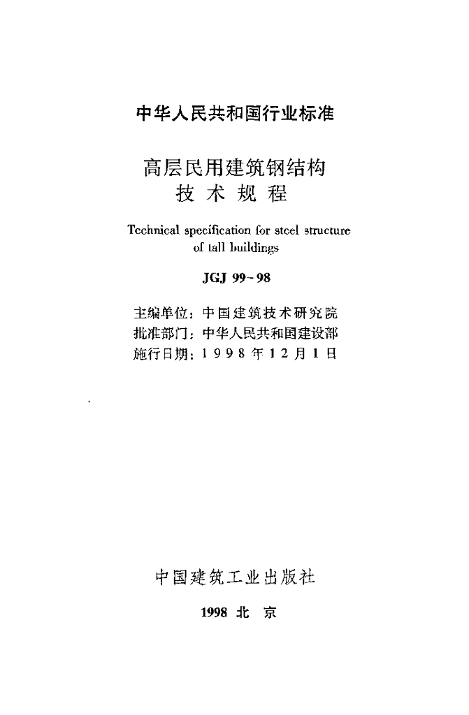 JGJ 99-1998 高层民用建筑钢结构技术规程(附条文说明)