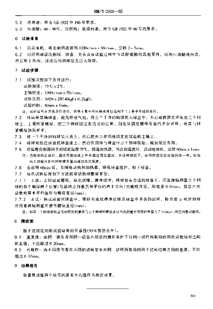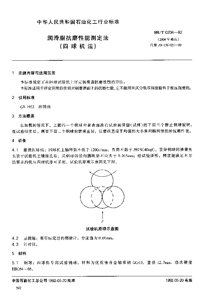 SH/T 0204-1992 润滑脂抗磨性能测定法(四球机法)
