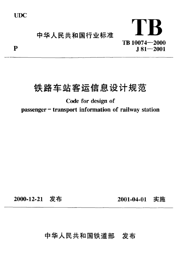 TB 10074-2000 铁路车站客运信息设计规范