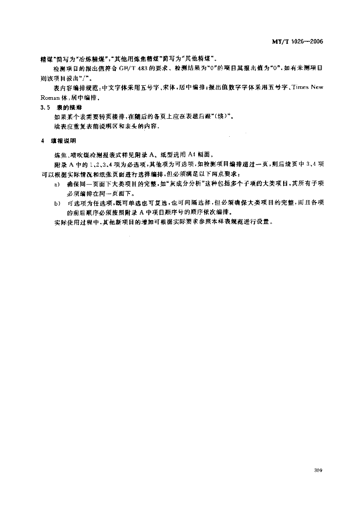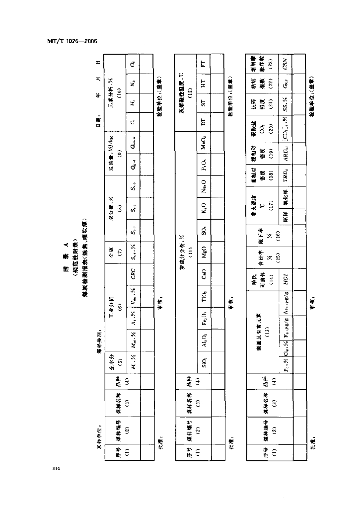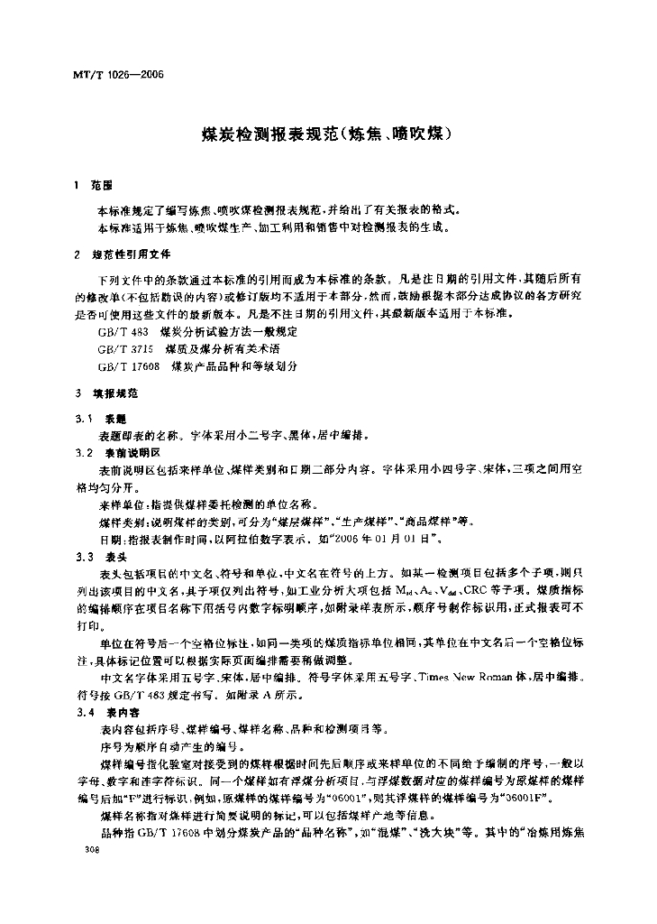 MT/T 1026-2006 煤炭检测报表规范(炼焦、喷吹煤)