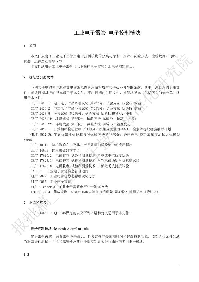 WJ/T 9108-2025 工业电子雷管电子控制模块
