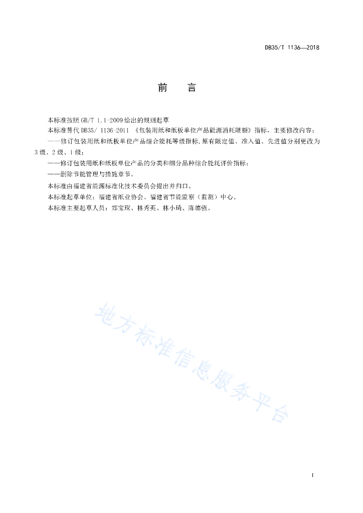 DB35/T 1136-2018 包装用纸和纸板单位产品能源消耗评价指南