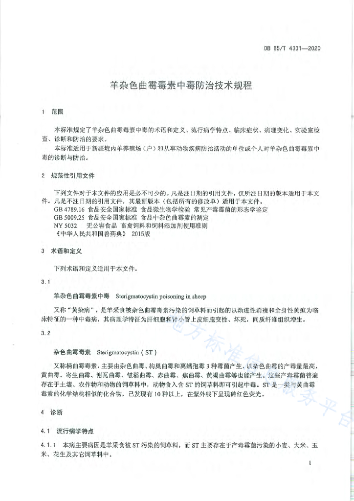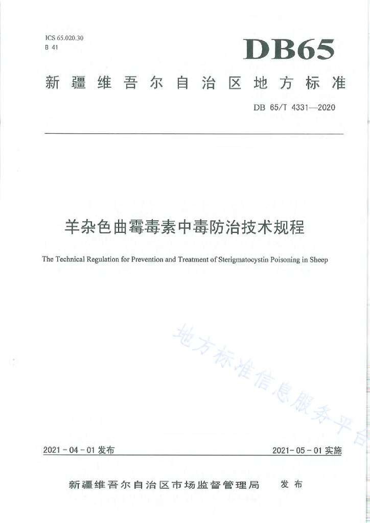 DB65/T 4331-2020 羊杂色曲霉毒素中毒防治技术规程