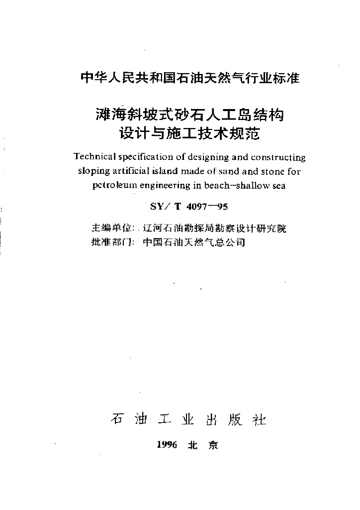 SY/T 4097-1995 滩海斜坡式砂石人工岛结构设计与施工技术规范
