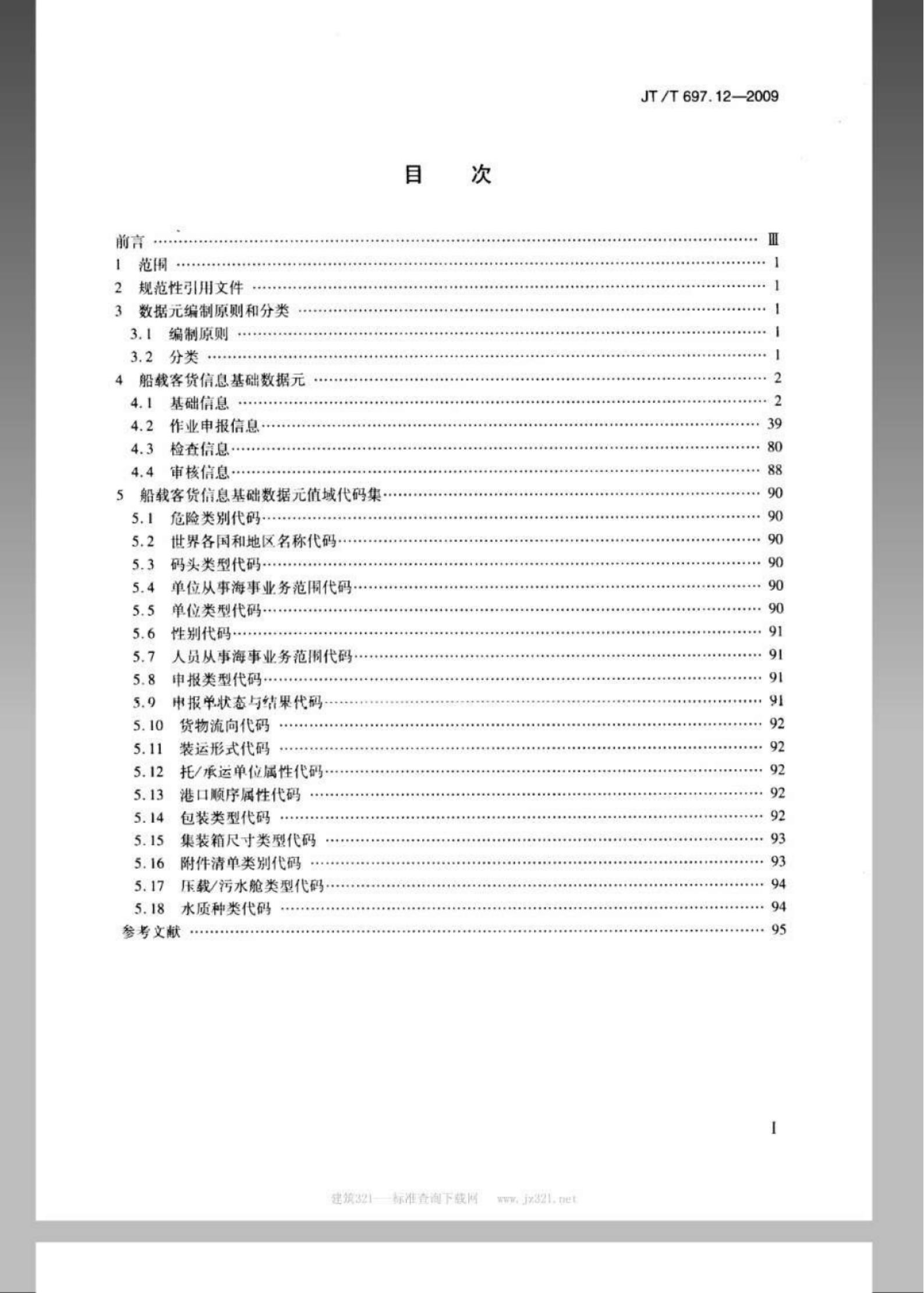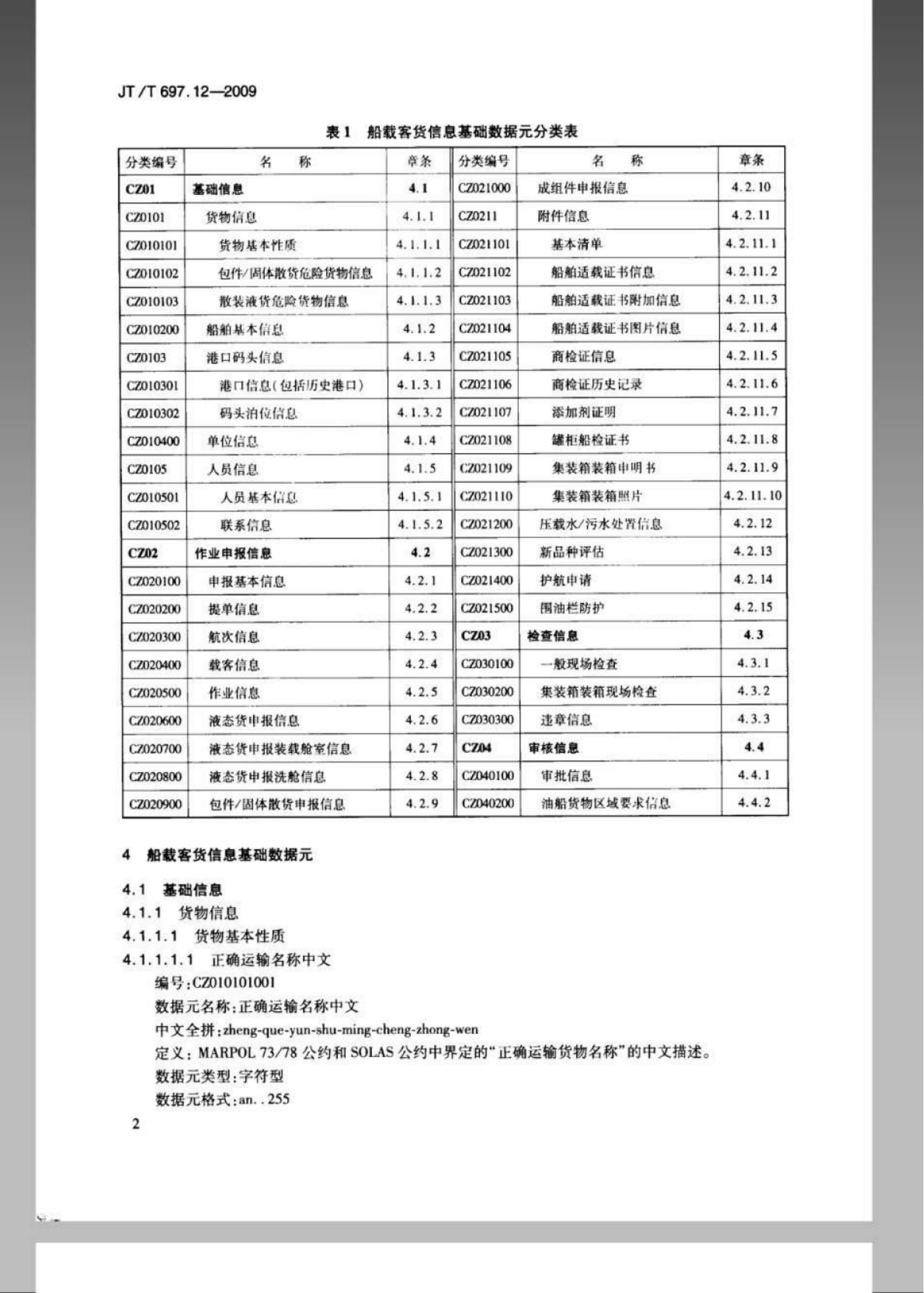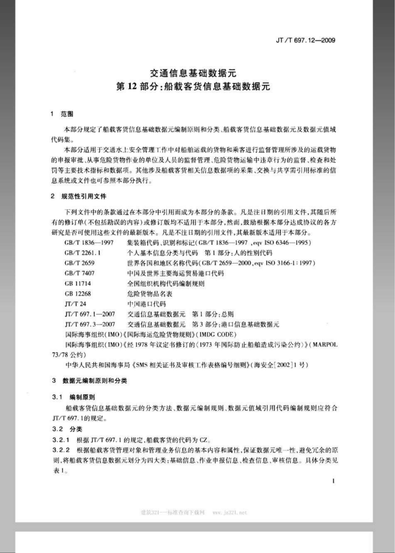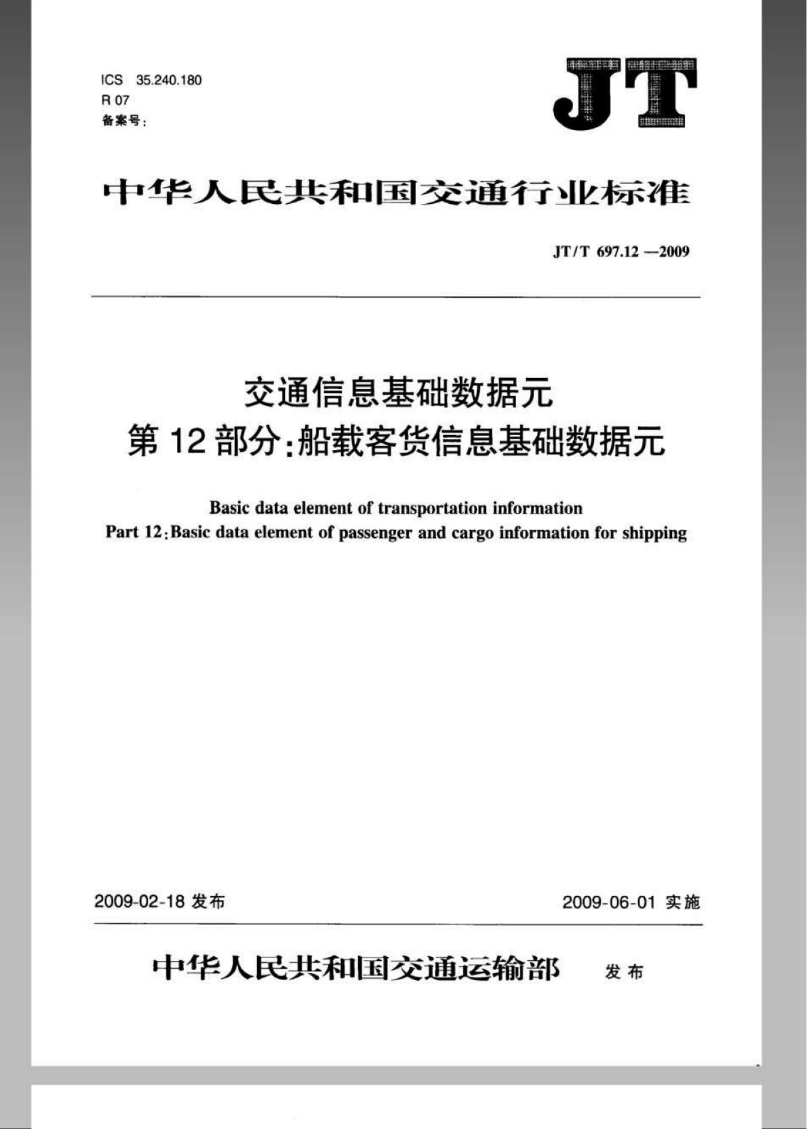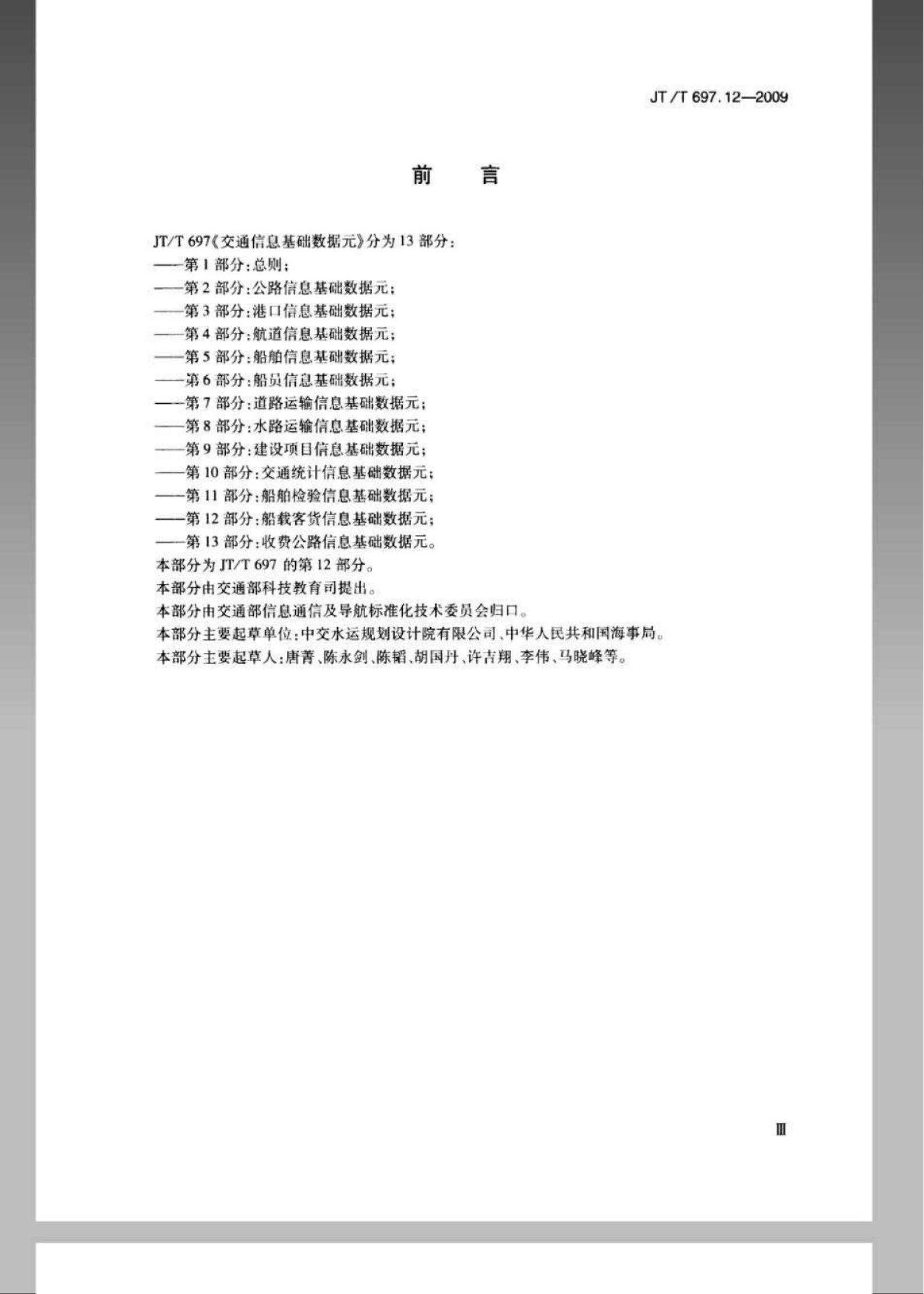 JT/T 697.12-2009 交通信息基础数据元 第12部分:船载客货信息基础数据元