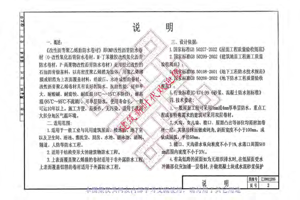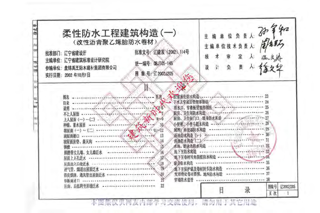 辽2002J205 柔性防水工程建筑构造(一)(改性沥青聚乙烯胎防水卷材)图集