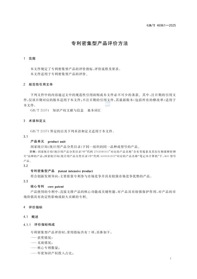 GB/T 46961-2025 专利密集型产品评价方法