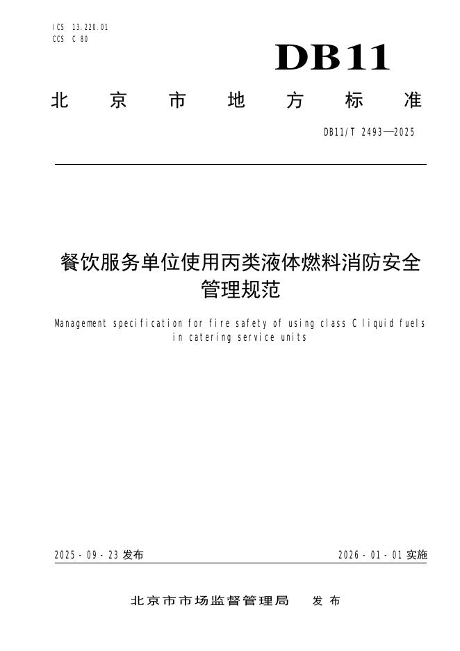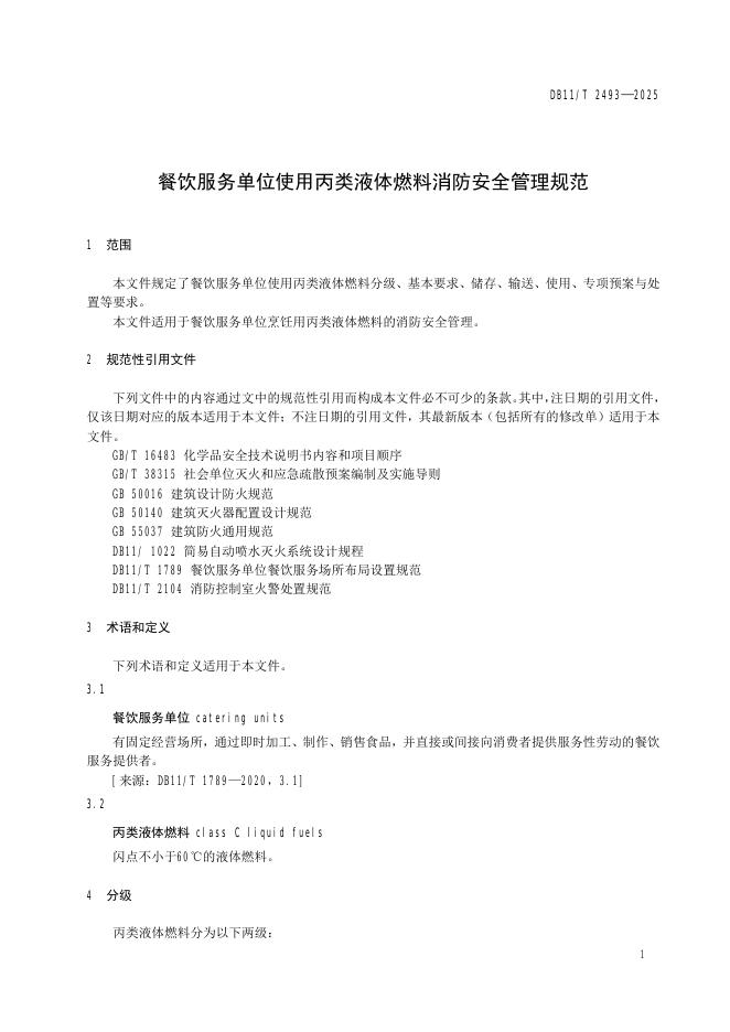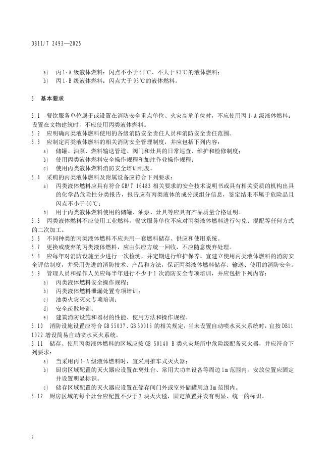 DB11/T 2493-2025 餐饮服务单位使用丙类液体燃料消防安全管理规范