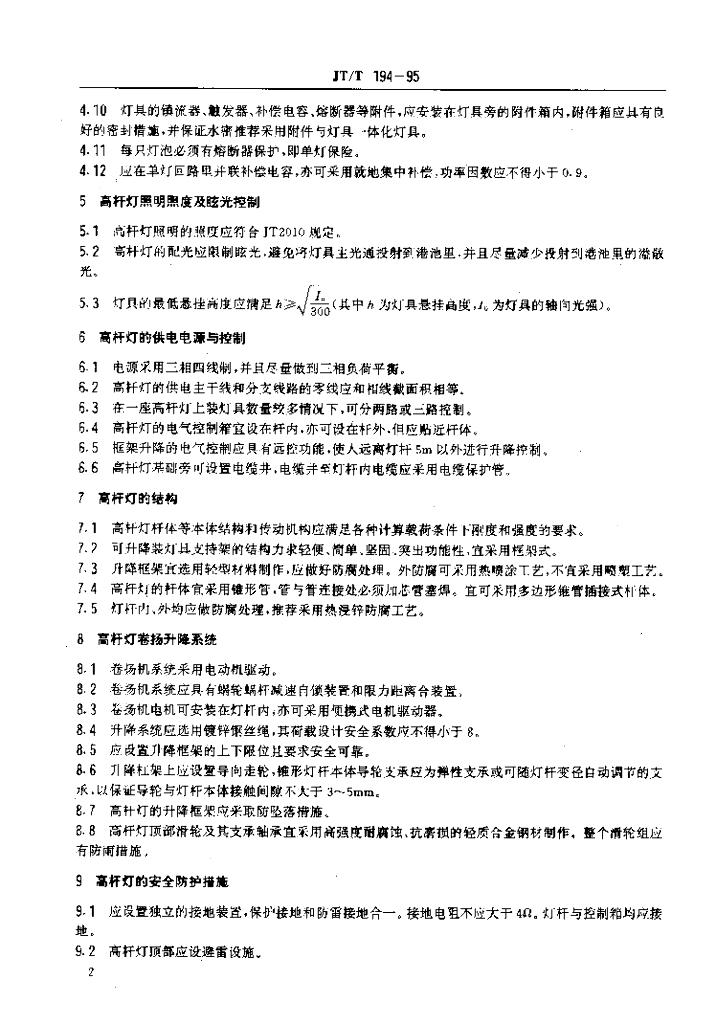 JT/T 194-1995 港口装卸区域升降式高杆照明设置规定