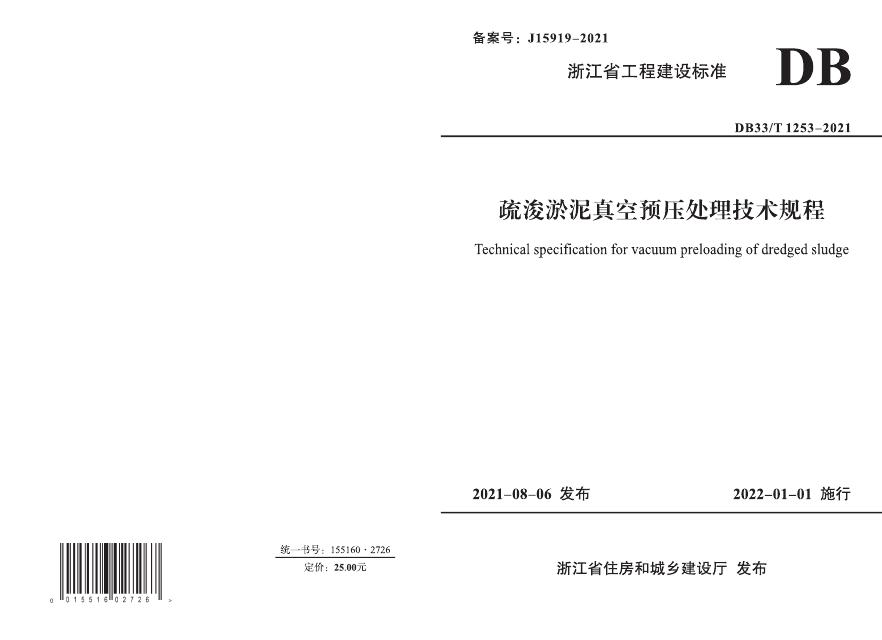 DB33/T 1253-2021 疏浚淤泥真空预压处理技术规程