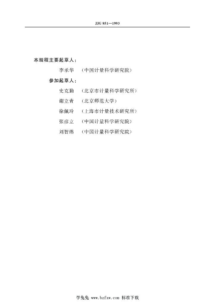 李承华(中国计量科学研究院)、史克勤(北京市计量科学研究所)、谢立青(北京师范大学)、徐佩玲(上海市计量技术研究所)、张彦立(中国计量科学研究院)、刘智绵(中国计量科学研究院)