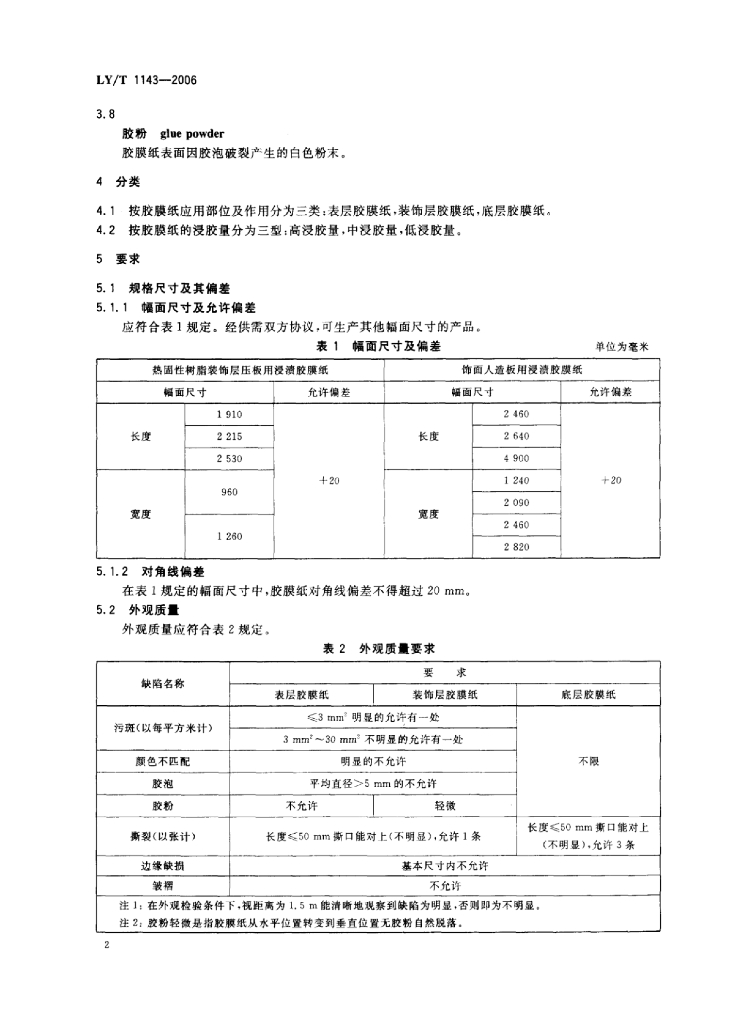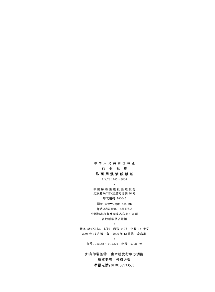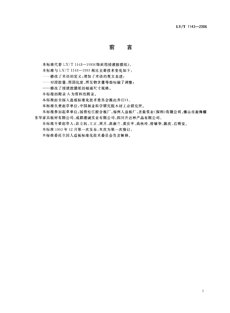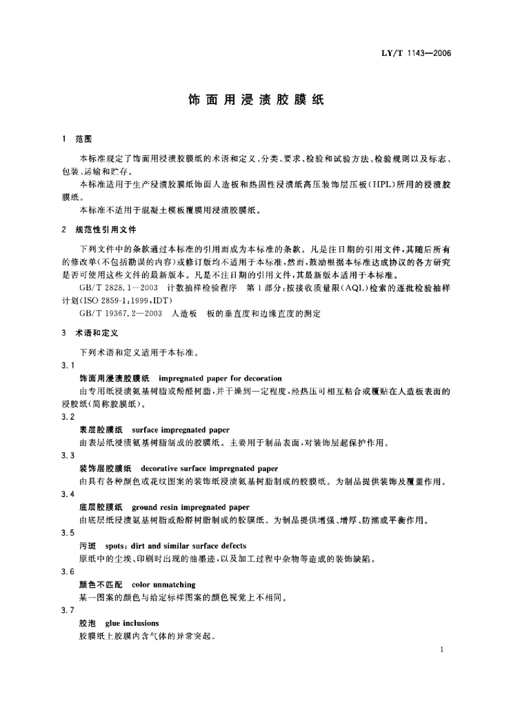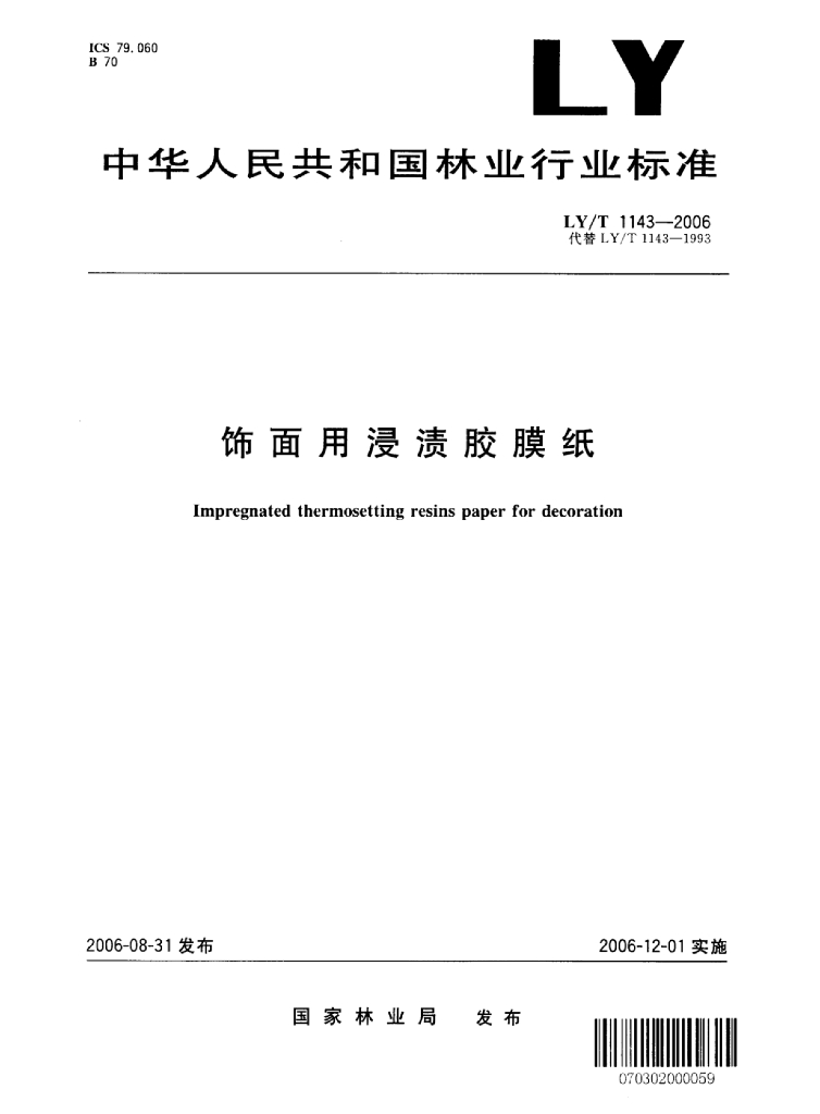LY/T 1143-2006 饰面用浸渍胶膜纸