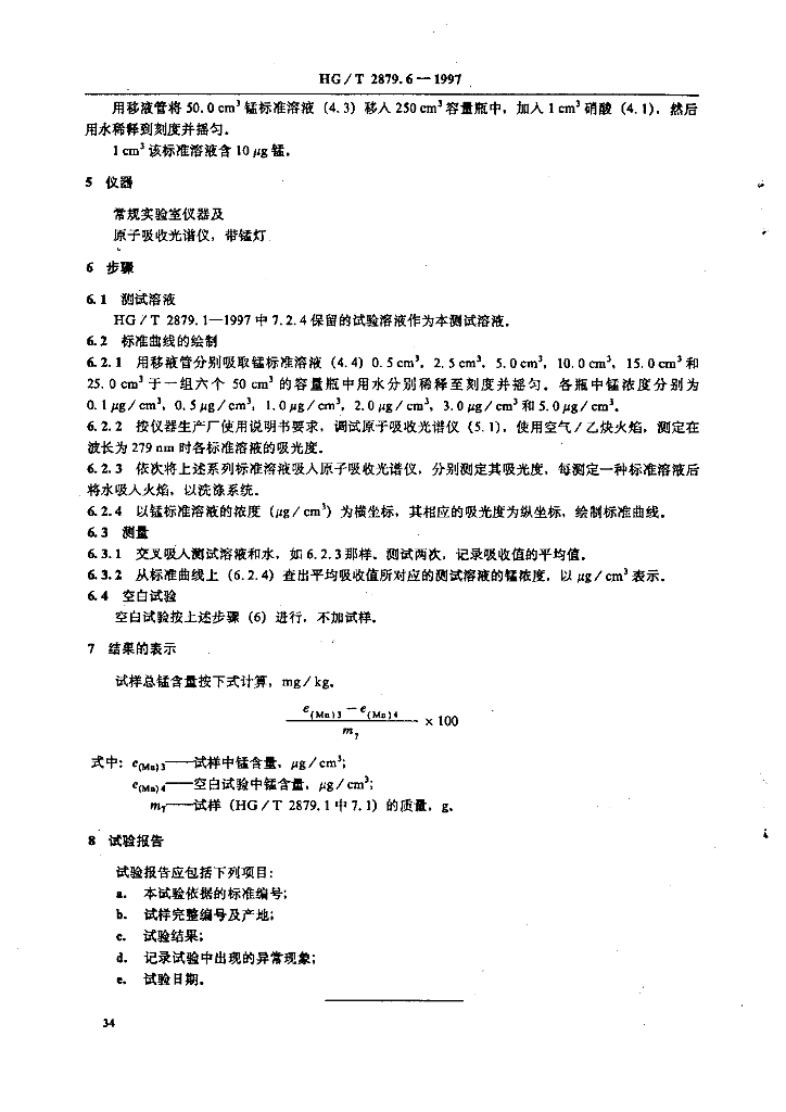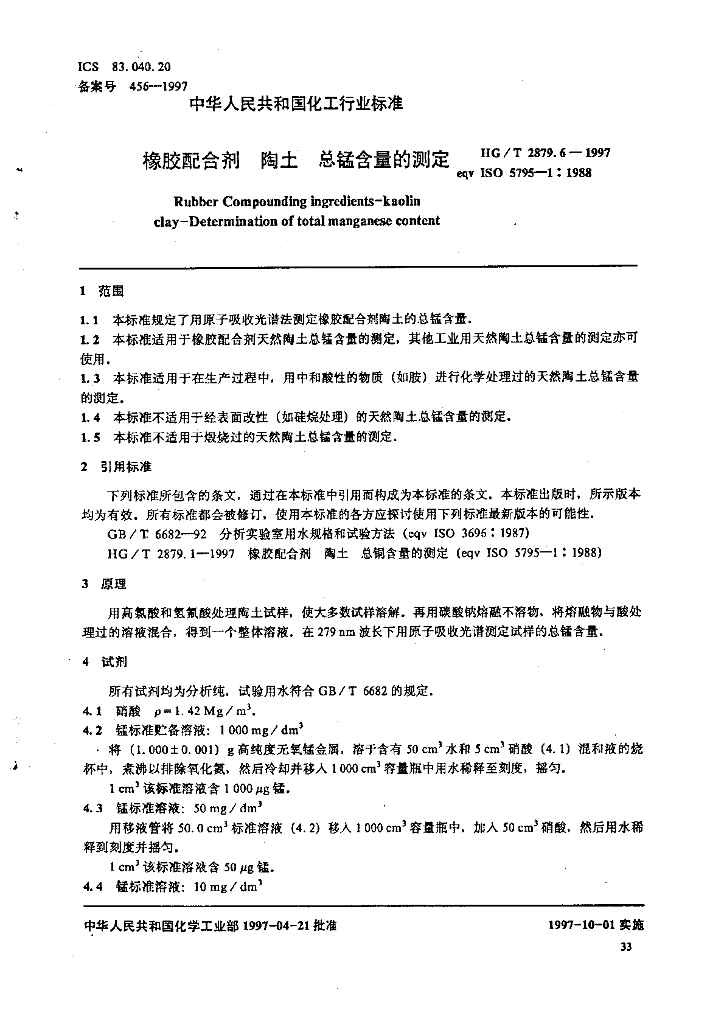 HG/T 2879.6-1997 橡胶配合剂 陶土 总锰含量的测定