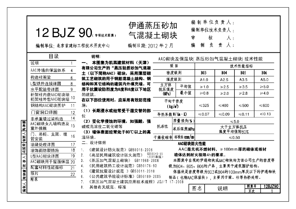 12BJZ90 伊通蒸压砂加气混凝土砌块图集