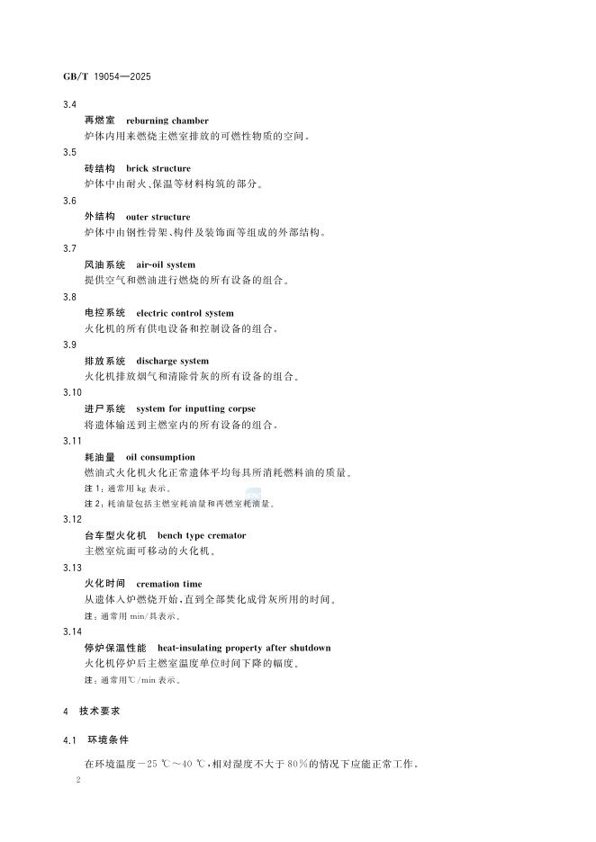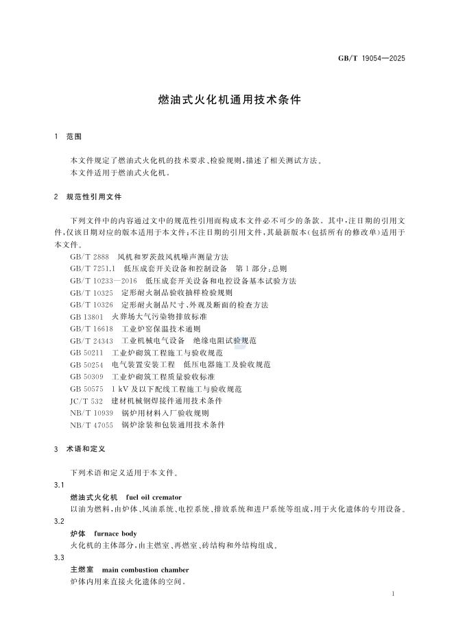 GB/T 19054-2025 燃油式火化机通用技术条件