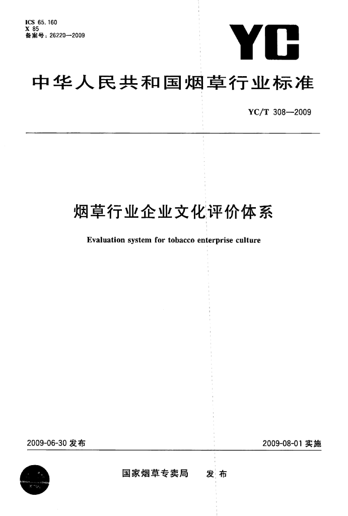 YC/T 308-2009 烟草行业企业文化评价体系