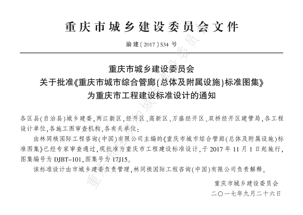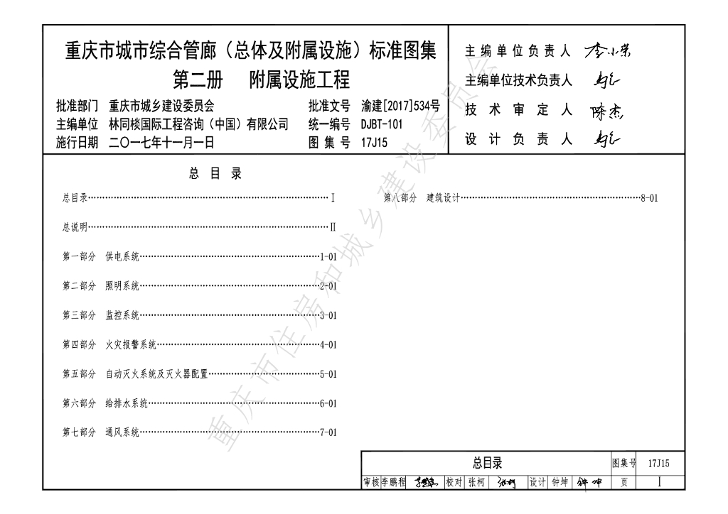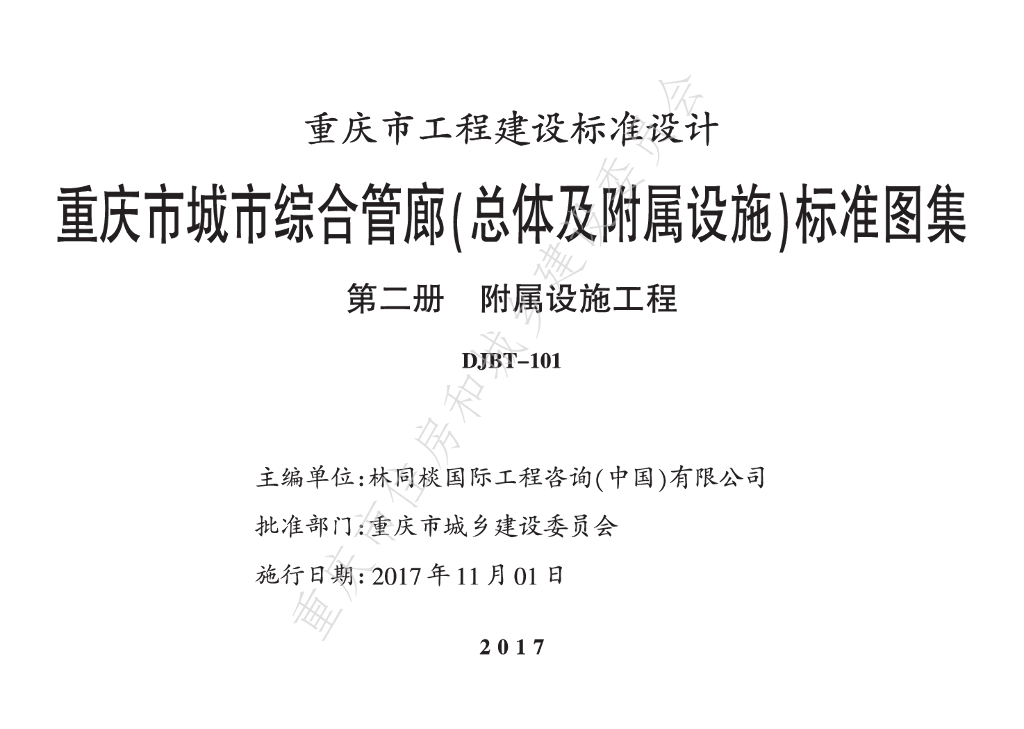 17J15 重庆市城市综合管廊(总体及附属设施)标准图集 第二册 附属设施工程图集(DJBT-101)
