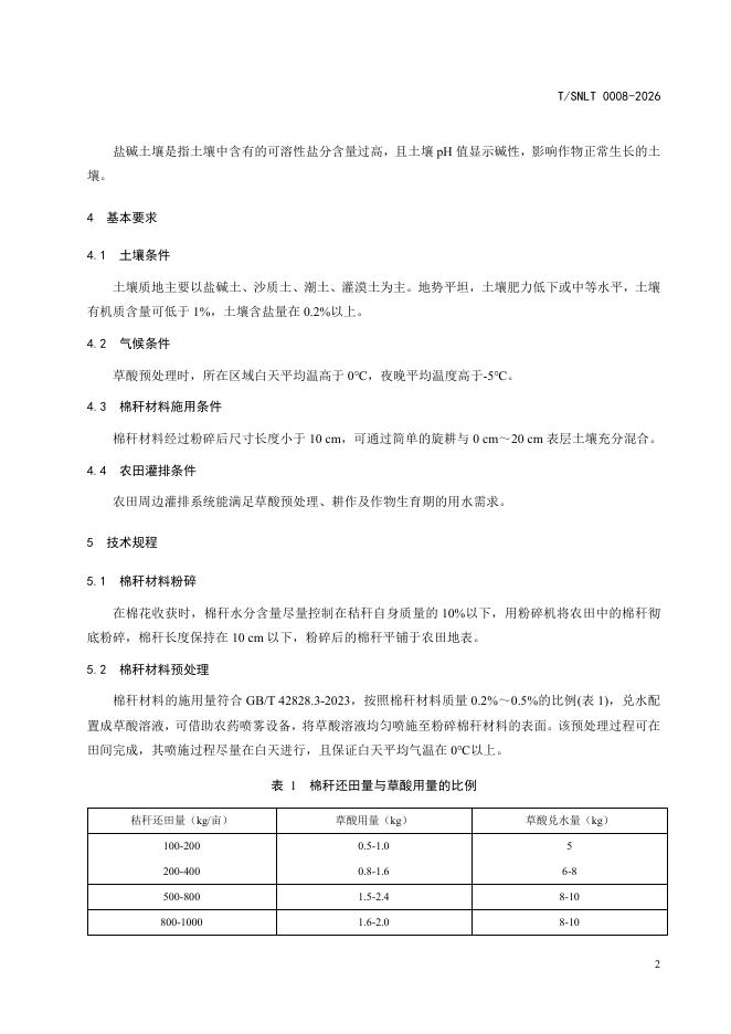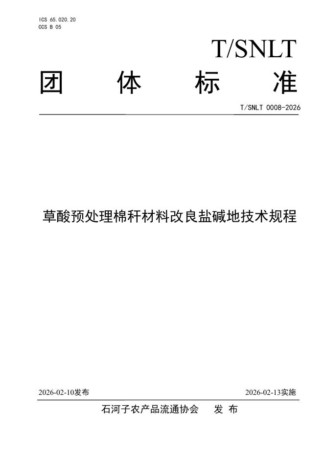 T/SNLT 0008-2026 草酸预处理棉秆材料改良盐碱地技术规程