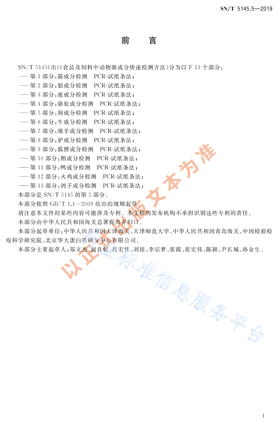 SN/T 5145.5-2019 出口食品及饲料中动物源成分快速检测方法 第5部分:狗成分检测 PCR-试纸条法