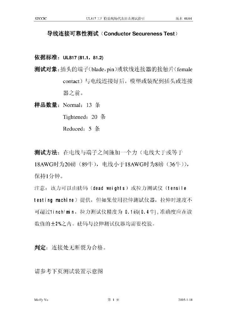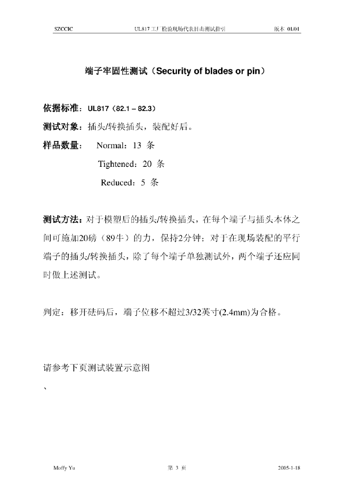 UL 817 工厂检验 现场代表目击测试指引