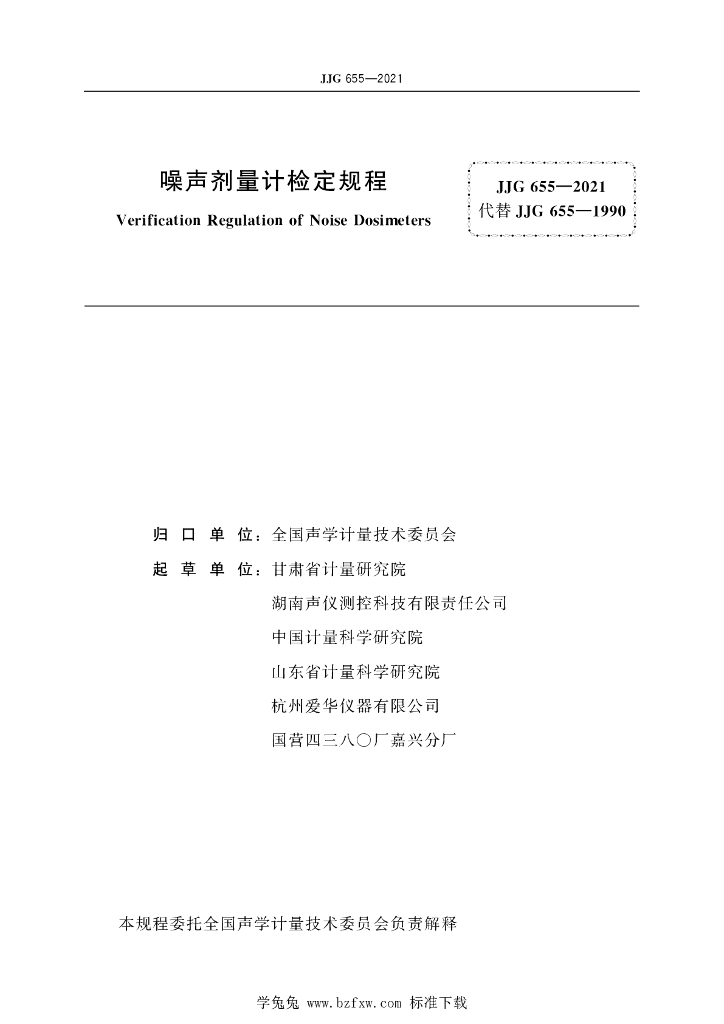 甘肃省计量研究院、湖南声仪测控科技有限责任公司、中国计量科学研究院、山东省计量科学研究院、杭州爱华仪器有限公司、国营四三八○厂嘉兴分厂