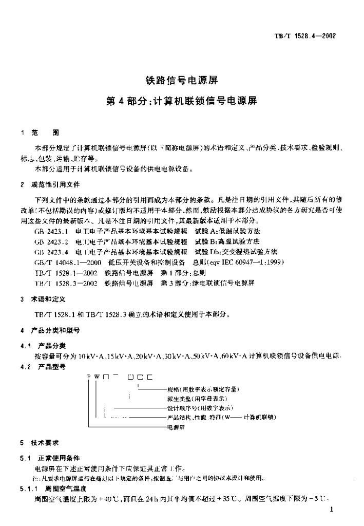 TB/T 1528.4-2002 铁道信号电源屏 第4部分:计算机联锁信号电源屏