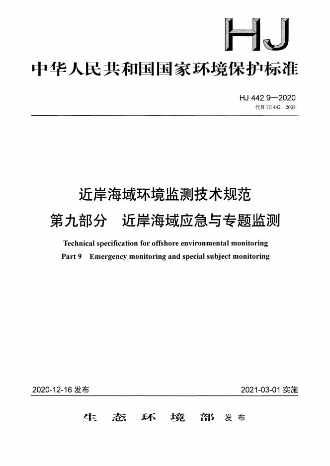 HJ 442.9-2020 近岸海域环境监测技术规范 第九部分 近岸海域应急与专题监测