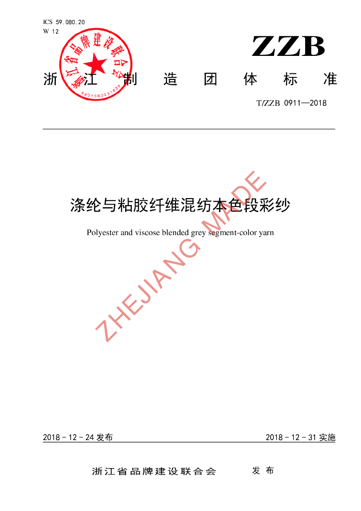 浙江云山纺织印染有限公司、浙江省纺织测试研究院、浙江华孚色纺有限公司、浙江双灯家纺有限公司、浙江祥嘉纺织有限公司、兰溪长源山纺织有限公司