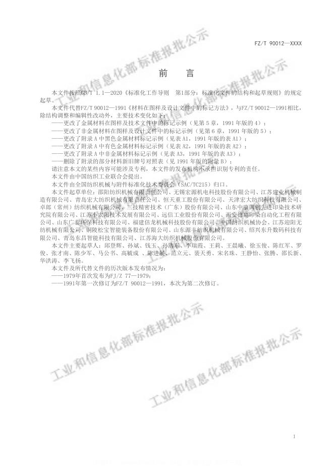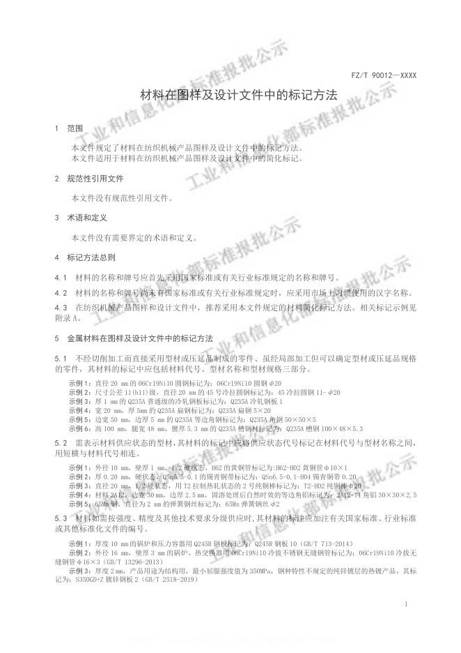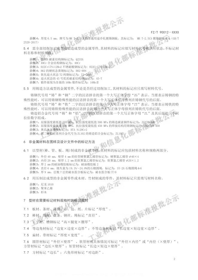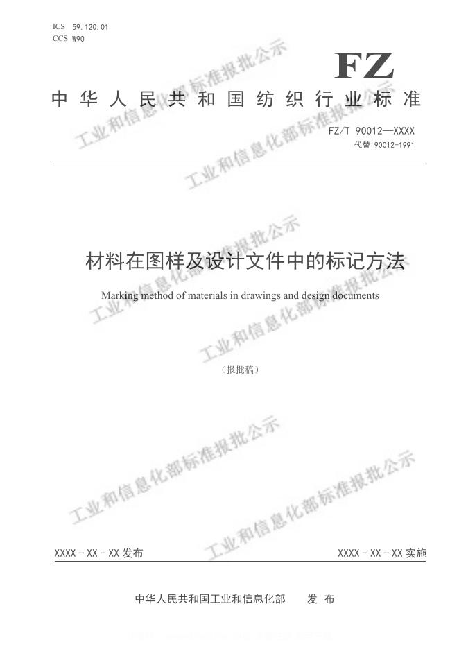 FZ/T 90012-2023 材料在图样及设计文件中的标记方法