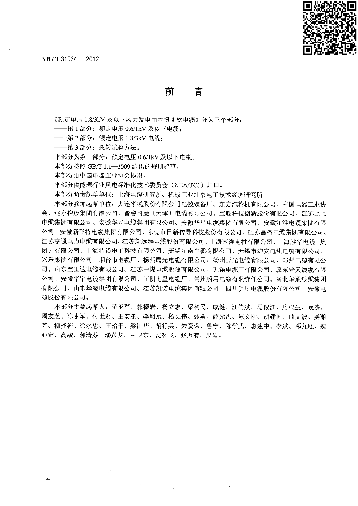 NB/T 31034-2012 额定电压1.8/3kV及以下风力发电用耐扭曲软电缆 第1部分:额定电压0.6/1kV及以下电缆
