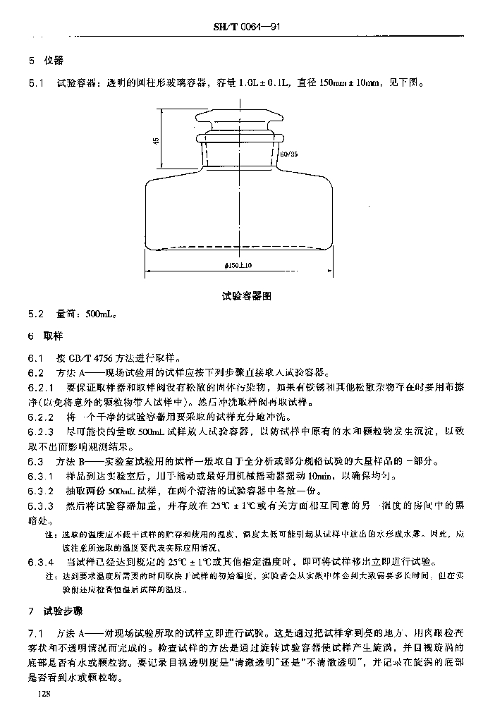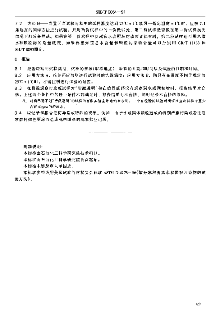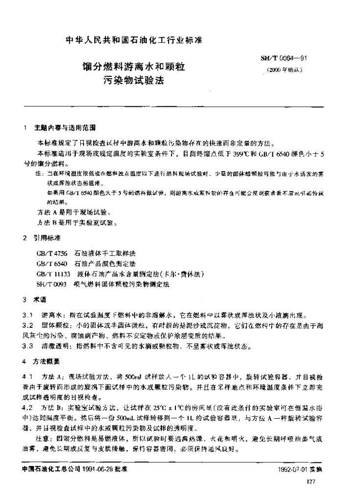 SH/T 0064-1991 馏分燃料游离水和颗粒污染物试验法