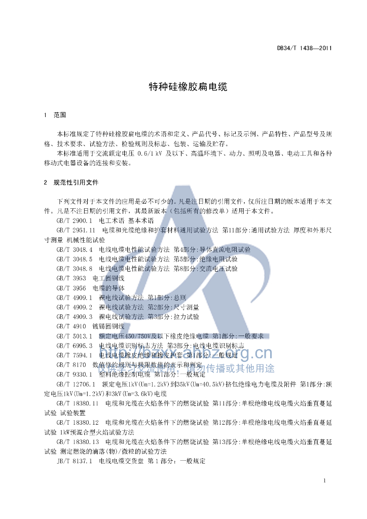 DB34/T 1438-2011 特种硅橡胶扁电缆