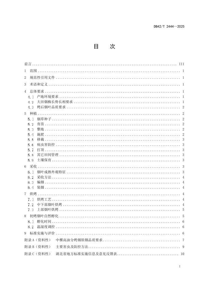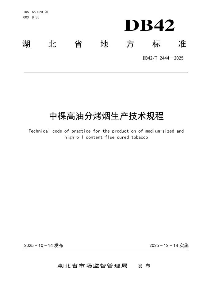 DB42/T 2444-2025 中棵高油分烤烟生产技术规程