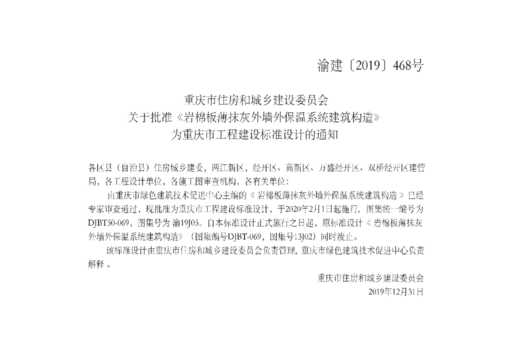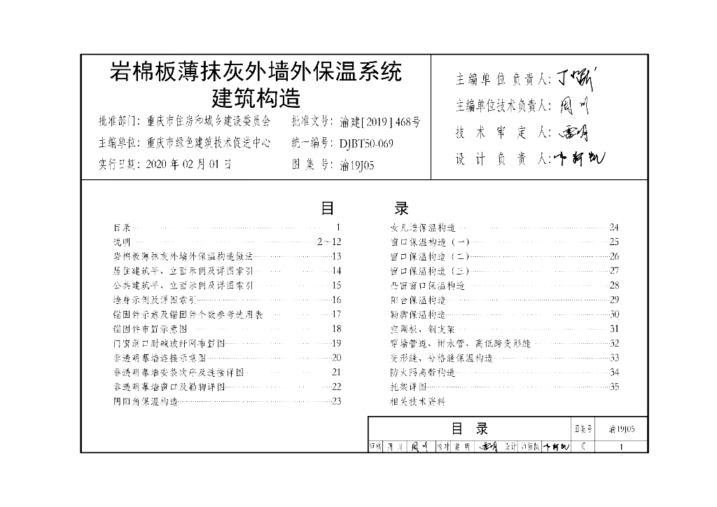 渝19J05 岩棉板薄抹灰外墙外保温系统建筑构造图集(DJBT50-069)
