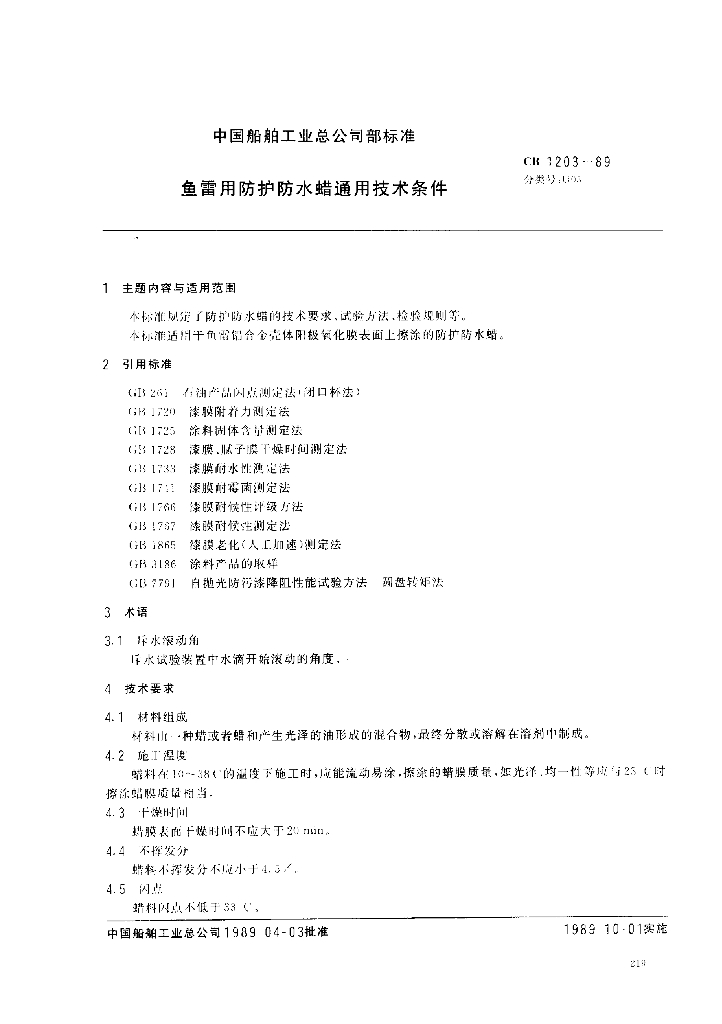 CB 1203-1989 鱼雷用防护防水蜡通用技术条件