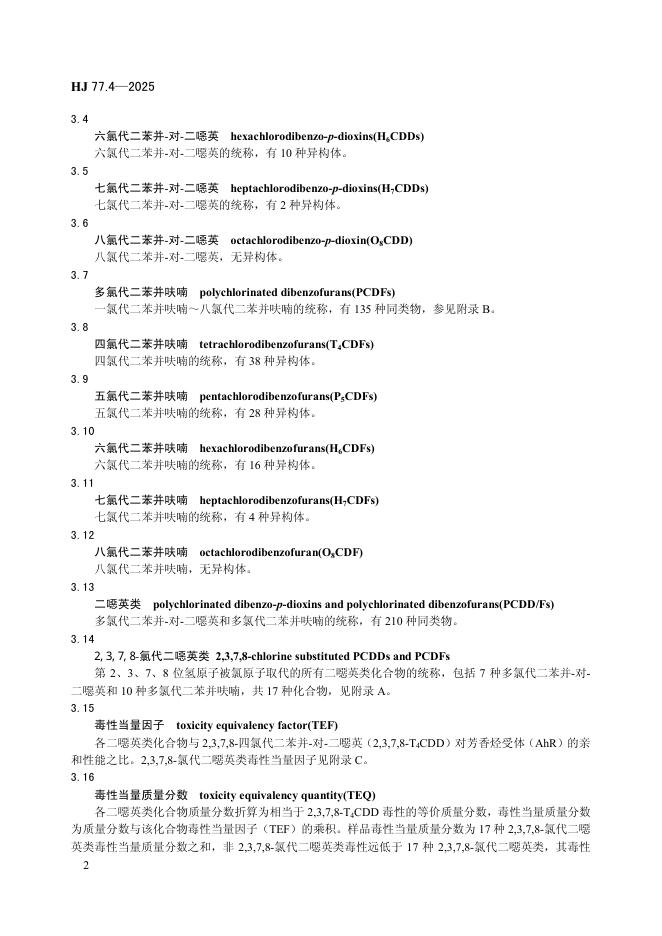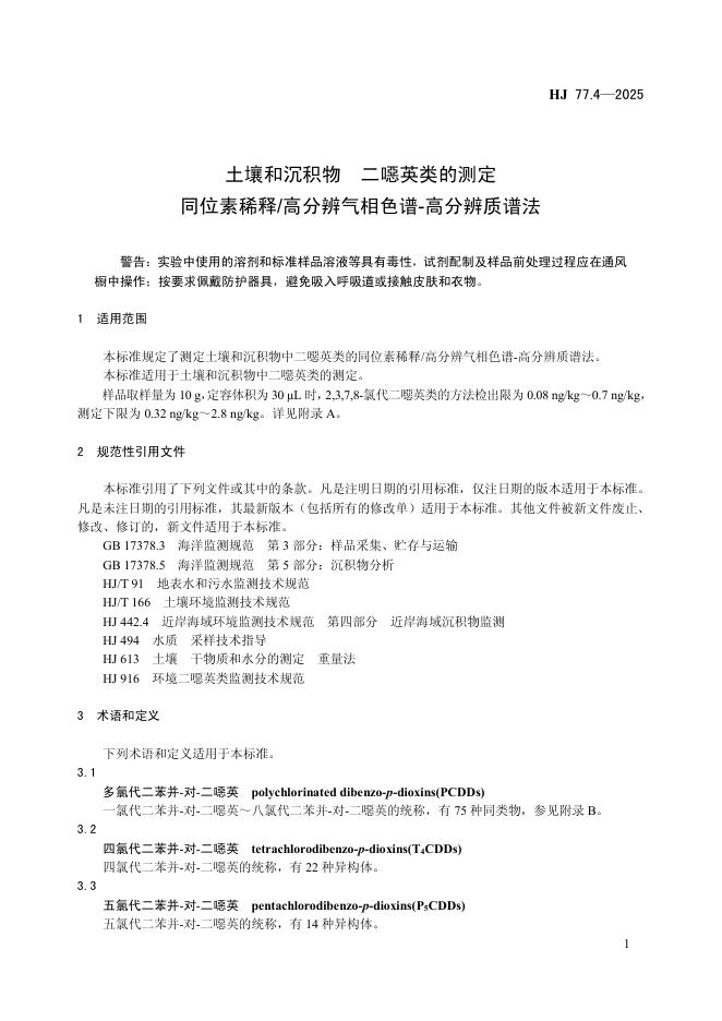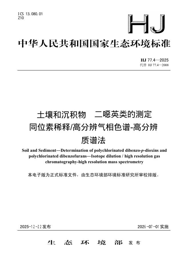 HJ 77.4-2025 土壤和沉积物 二噁英类的测定 同位素稀释/高分辨气相色谱-高分辨质谱法