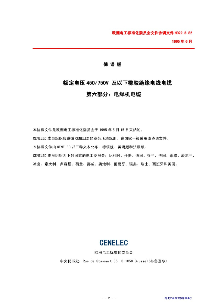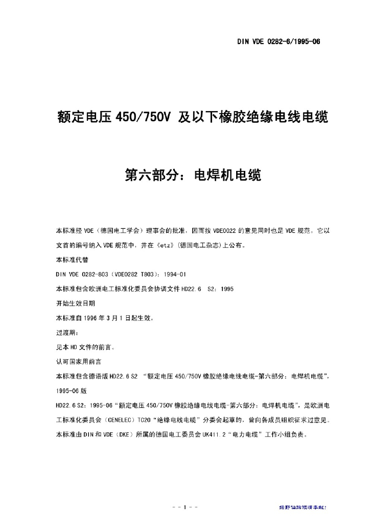 DIN VDE 0282-6 额定电压450/750V 及以下橡胶绝缘电线电缆第六部分:电焊机电缆