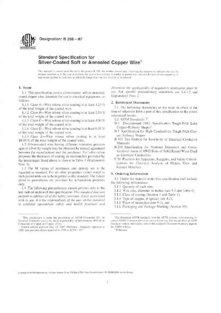 ASTM B298-07 镀银的软或退火铜线用标准规范