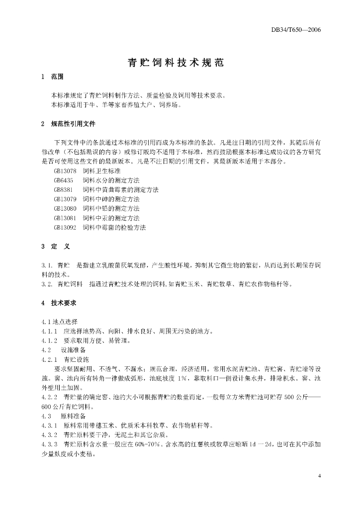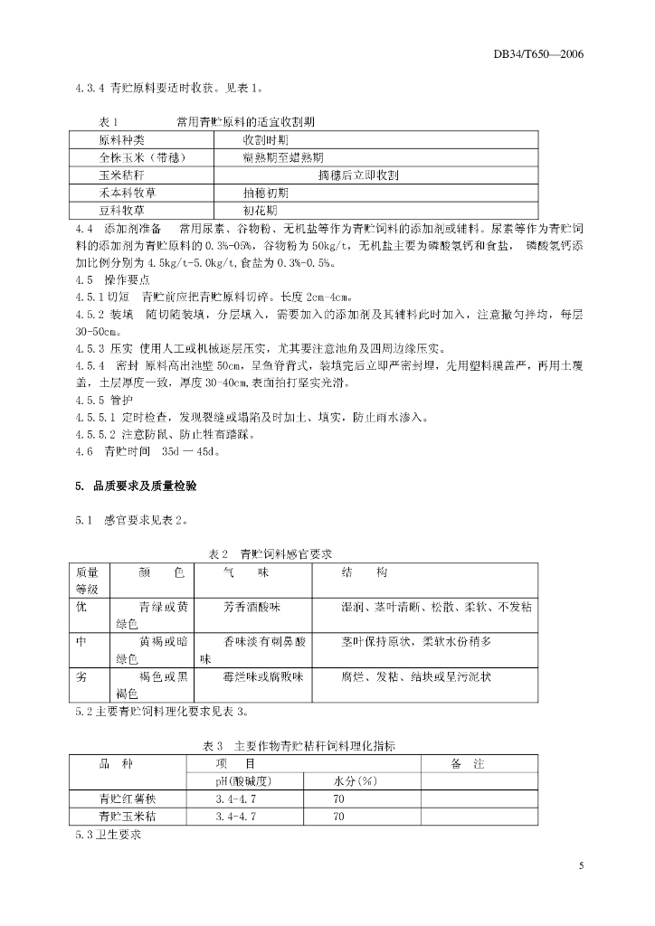 DB34/T 650-2006 青贮饲料技术规范