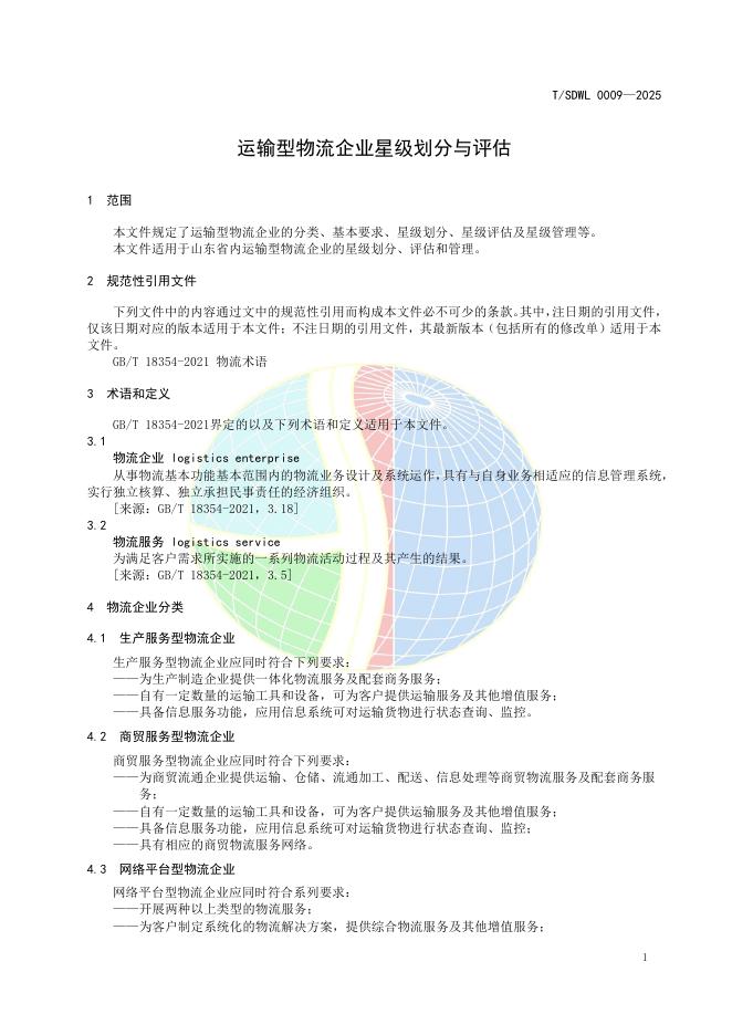 T/SDWL 0009-2025 运输型物流企业星级划分与评估