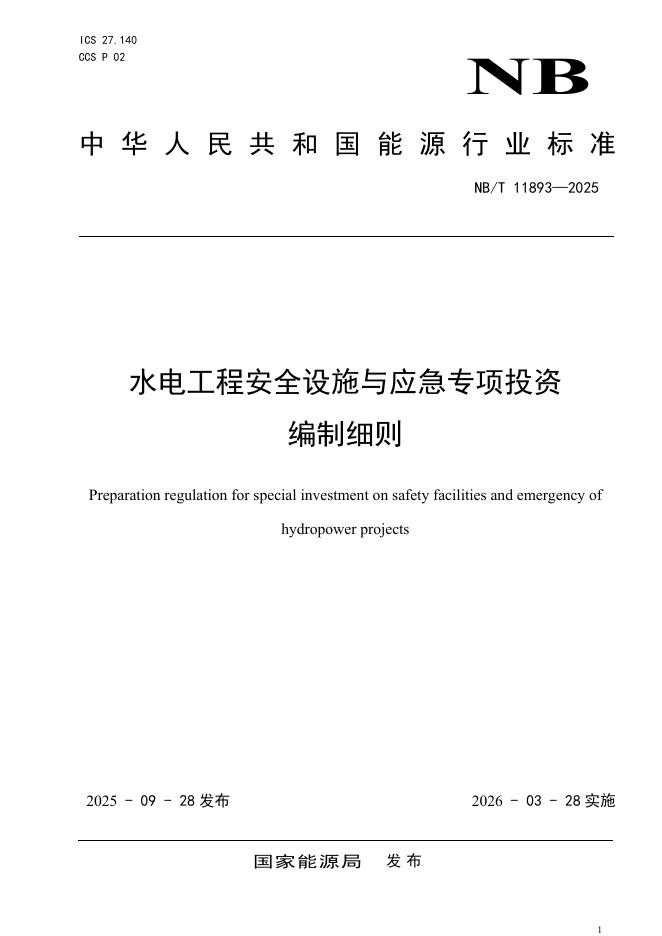 NB/T 11893-2025 水电工程安全设施与应急专项投资编制细则