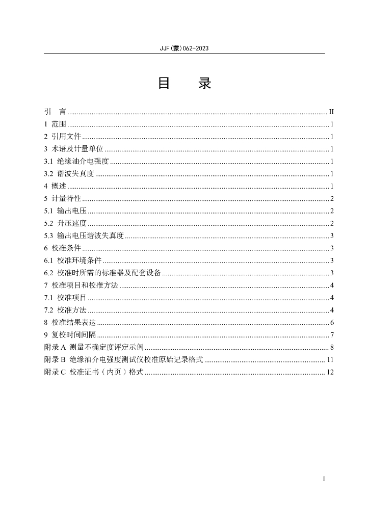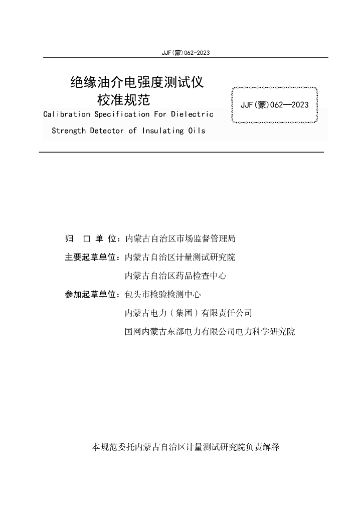 JJF(蒙)062-2023 绝缘油介电强度测试仪校准规范