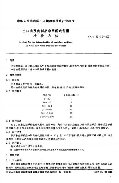 SN/T 1016.2-2001 出口肉及肉制品中甲酚残留量检验方法