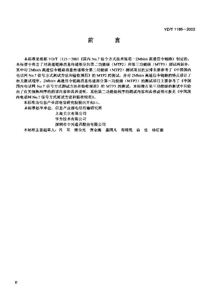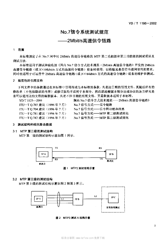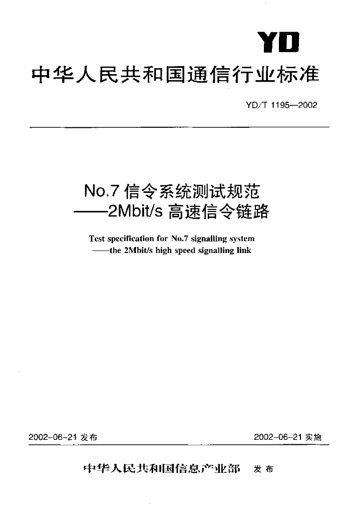 YD/T 1195-2002 No.7 信令系统测试规范——2Mbit/s 高速信令链路