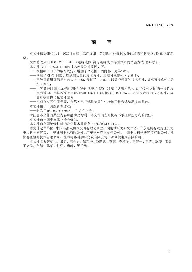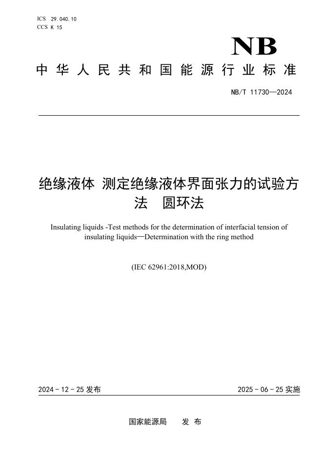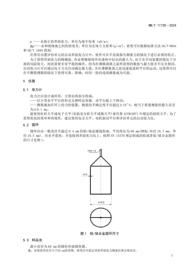NB/T 11730-2024 绝缘液体 测定绝缘液体界面张力的试验方法 圆环法